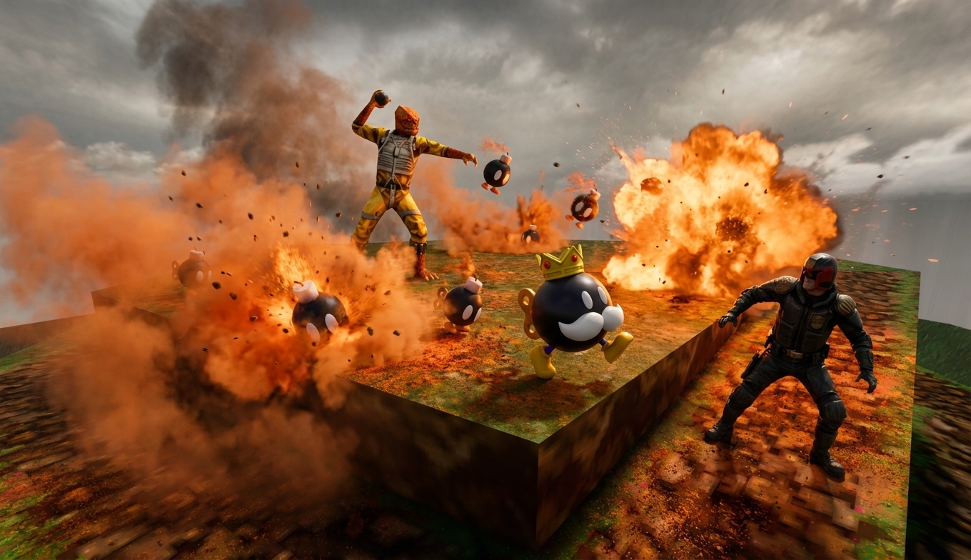 The JK Crew targets King Bob-omb’s crown on the Bob-omb Battlefield planet, but Gnarl discovers the bob-ombs’ fatal weakness to spicy food, turning a royal heist into an explosive fireworks show that scatters Dralloc pursuers.