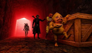 A dark montage showcasing Sith, Beefy, HK-47, Nick, and Gnarl as they travel through multiple gaming realities with the Genesis Drive, leaving only twisted destruction and horrific transformations in their wake.